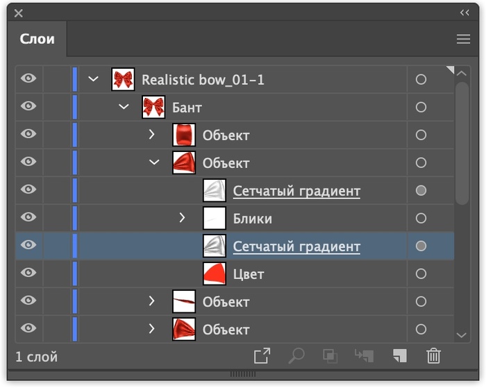 Как правильно сделать сетчатый градиент для однотонных объектов в Adobe Illustrator, что бы было легко их перекрашивать на примере моего красного бантика.