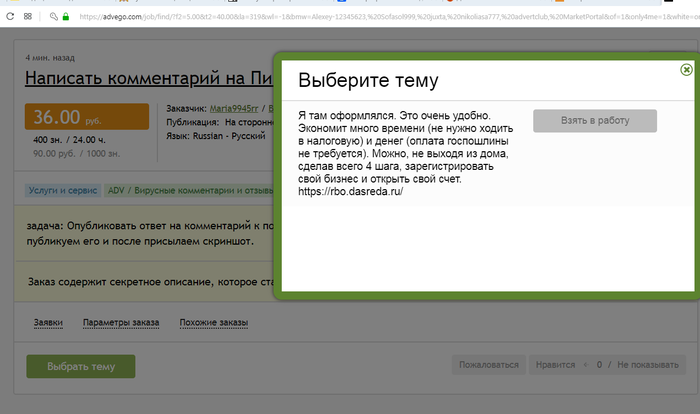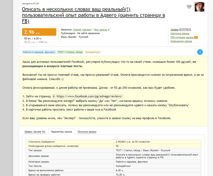 В Адвего много заданий по вирусному маркетингу. Ну как по вирусному маркетингу. Тупо заказных отзывов на разных сайтах. Если видите отзывы на гугл-картах, на яндекс-картах и т.д., то имейте ввиду, что преимущественно это заказные отзывы. Хотя доля отзывов с Адвеги на этих ресурсах невелика. Потому что грамотно написать отзывы может лишь малая толика пользователей этого сайта. В основном пишется ерунда, удаляемая на стадии модерации.
