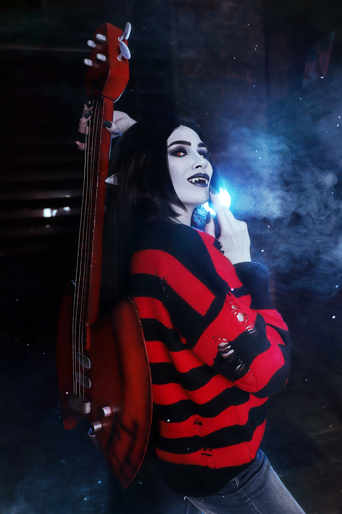 Вернулась вновь к Adventure Time я спустя долгое время, летом 22 года. Знакомый поддержал желание посмотреть мульт вместе, и мы начали смотреть с самой первой серии. У меня большая любовь к персонажам вампирам, да и Марселин мне запомнилась ещё тогда, в детстве. Поэтому и подумала, а почему бы не сделать косплей для фотосесии? Костюм несложный, иногда нужно что-нибудь и простенькое. :D Решила я, что буду делать вампира и пошла искать себе напарника для фотосессии.