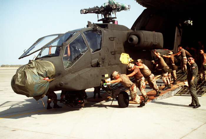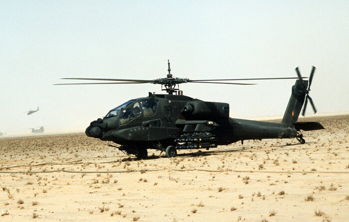 По работе в песках на операции «Щит пустыни» - 90 год, Апач показал себя неплохо, раза в два лучше, чем иракские вертушки, а проблемы вылезли только с лопастями, которые в песке Ирака быстро выходили из строя.