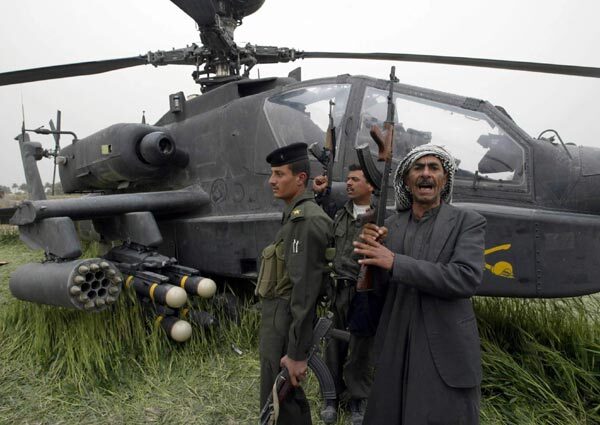 Весь мир обошли кадры лежащего на поле без единого видимого повреждения вертолета Апач. Какой то облезлый хуй на его фоне тряс бердышом и утверждал на арабском, что, мол, это он завалил шайтан-птицу дробью на утку.
