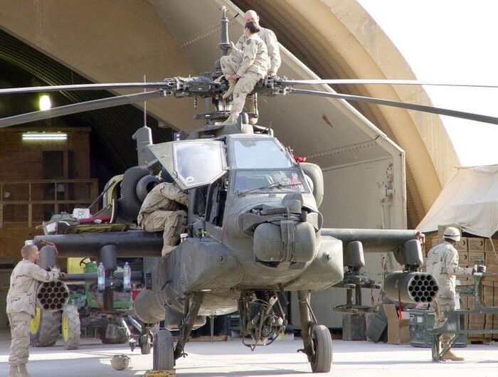 На военной базе обнаружили двух солдат, занимающихся сексом в кабине боевого вертолета Apache во время планового технического обслуживания.