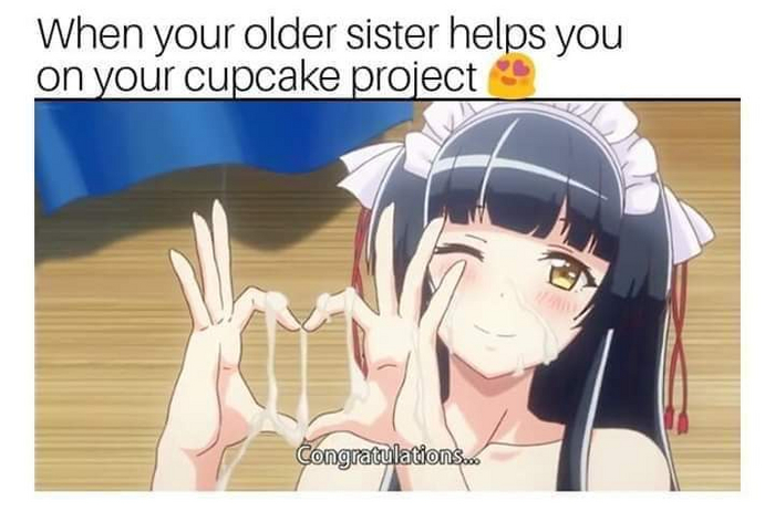 Когда твоя старшая сестра помогла тебе с твоим кекс-проектом😍