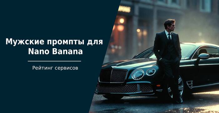 Попробуйте также: Bentley легко заменить на Porsche 911, Mercedes-AMG или Aston Martin: Nano Banana хорошо знает силуэты популярных марок. Для более дерзкого настроения добавьте «расстегнутый ворот рубашки, без галстука».