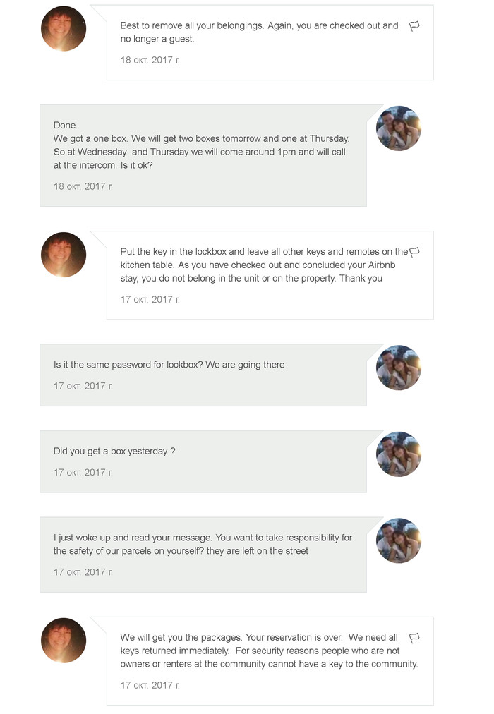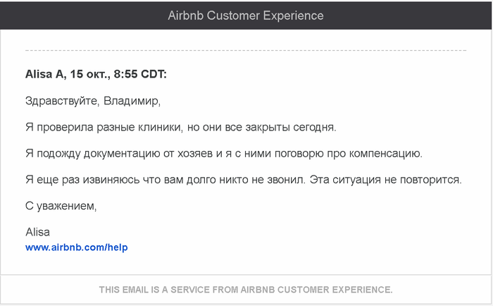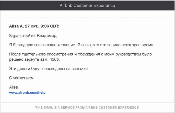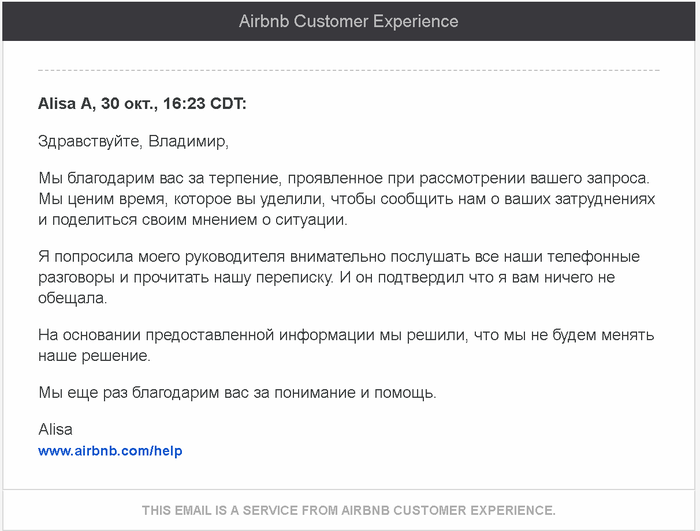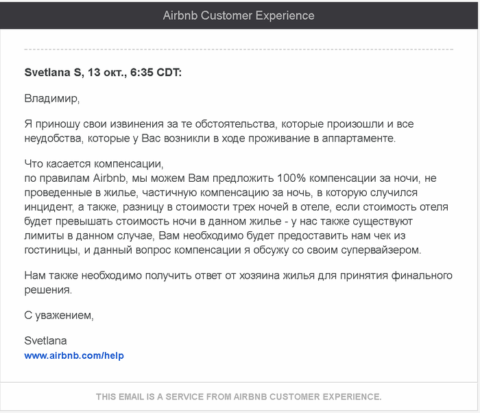 Я — я, СП — служба поддержки www.airbnb.com