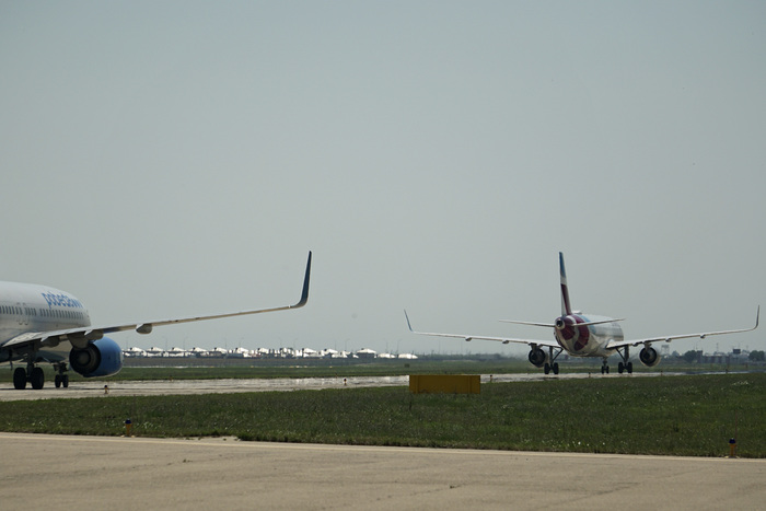 Такой вот кадр получился, как на дуэли два Airbus 320 двух авиа гигантов страны, перрон аэропорта Краснодар.