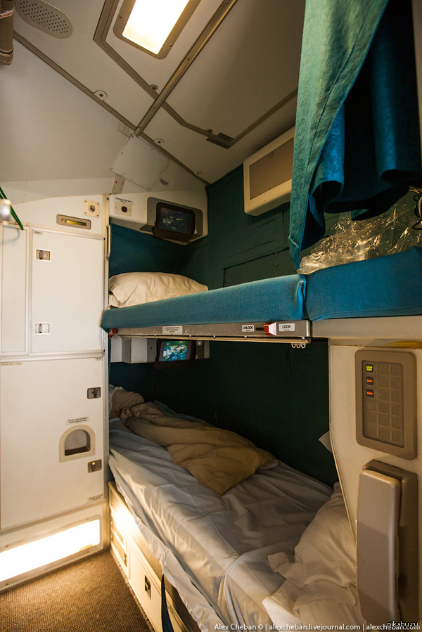275 marcod Вот так выглядит комната отдыха в кабине пилотов А340! 11 лет назад мониторы над кроватями - это точно такая же система бортовых развлечений как и у пассажиров, ничего служебного. Airbus a340 Пилот Самолет Отдых Интересное