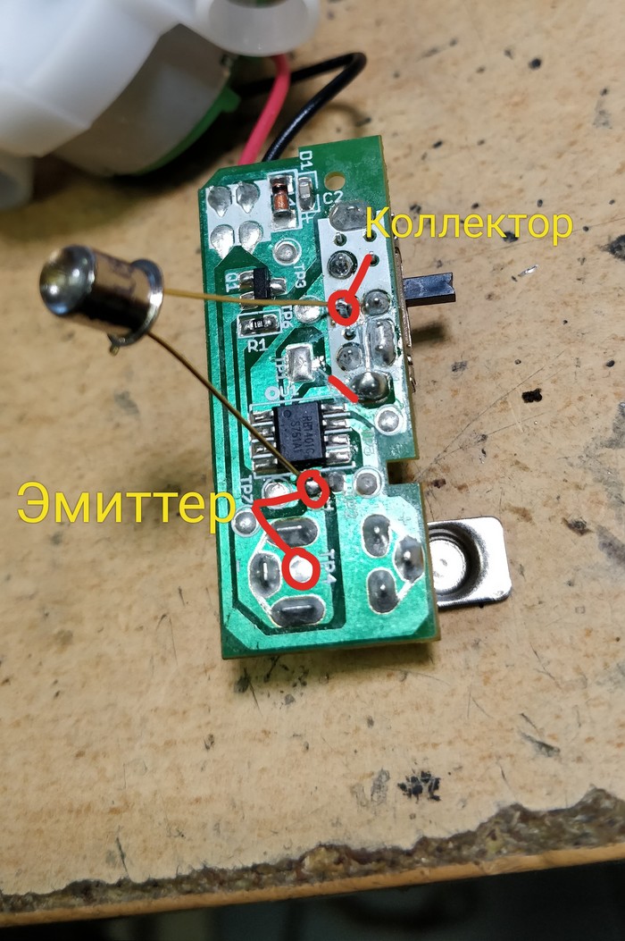 Расковырял, заглянул в потроха и удивился: никакого фотодатчика и красного диода-индикатора внутри нет!