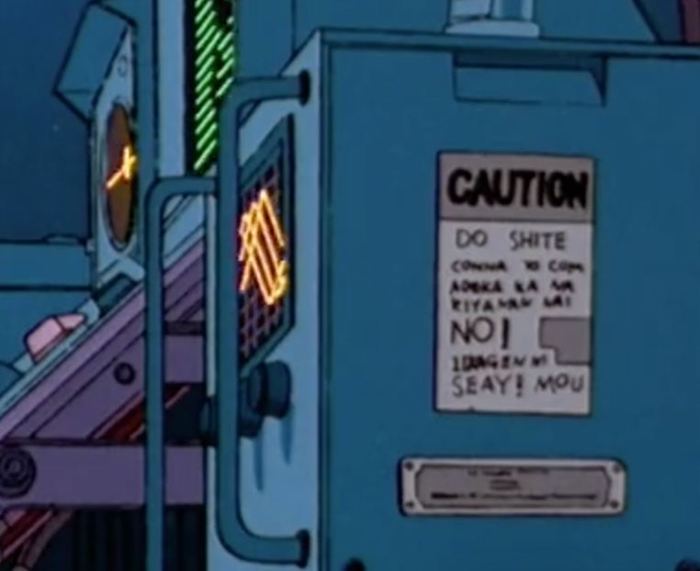 В декабре культовое аниме «Акира» можно было посмотреть на YouTube в высоком разрешении. Пользователь твиттера HikozaTwi заметил на 38-й минуте фильма надпись на медицинском оборудовании. Сверху на табличке написано Caution («Осторожно!»), а внизу текст на английском.