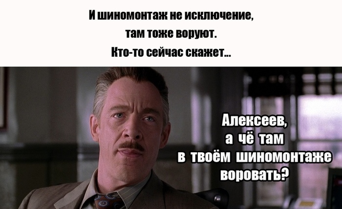 Вы приезжаете на замену шин, вам всё меняют, а потом предлагают оплатить мимо кассы. Конечно, в межсезонье, когда 3-4 машины в день, этим заниматься никто не будет. Но в сезон, как я уже говорил, в день 30-35 машин (если два поста), а в месяц около диВИТИста. Кто хватится двух-трёх машин в день (минимум), правда? А это 60-90 машин в месяц. Воруют только дорогие машины, по 5к-7к за работу. 60-90машин умножить на 5к-7к. И это помимо основной зп, премий, переработок и процентов.