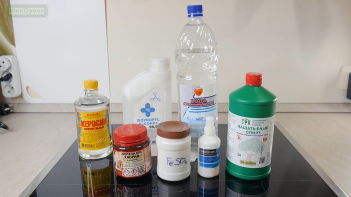- Керосин, желательно осветительный (он чище), искать в хозмагах и на строительном рынке.