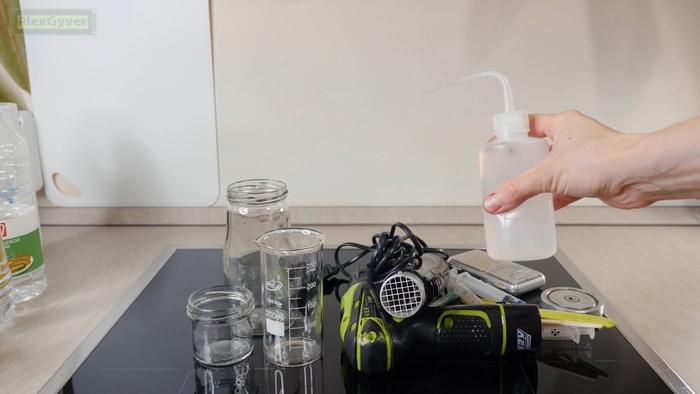 - Вода, желательно дистиллированная из магазина автозапчастей. Я делал с фильтрованной + кипячёной, разницы не заметил.