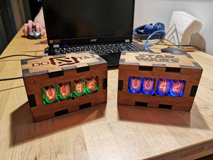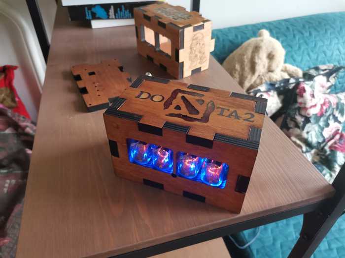 Захотел я сделать красивый и необычный подарок семейной паре на их "тридцателетия" (они с разлетом в несколько дней родились). Обоим нравятся часы на ГРИ, а вот мужская половина зависает еще и в дотку. Буквально за неделю до их юбилеев я закончил свои часики с лого STAR WARS и R2D2 на боковушках. Осталось дело за малым - переиначить оформление под любимую игру товарища.