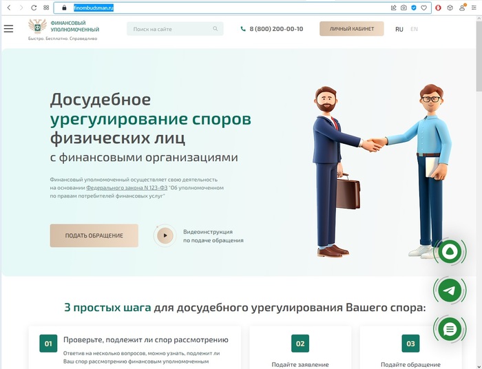 Для подачи обращения к обмудсмену необходимо: