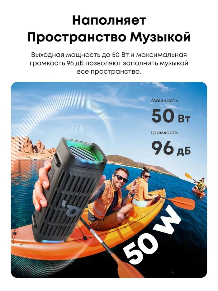 Портативность: Маленький размер и легкий вес позволяют брать колонку с собой куда угодно.