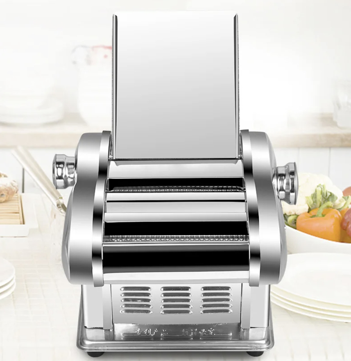 Домашнее приготовление лапши требует равномерного теста и точной раскатки. Электрическая машина из нержавеющей стали упрощает процесс и позволяет быстро получать заготовки нужной толщины. Конструкция ориентирована на стабильность, гигиеничность и удобство при регулярном использовании.