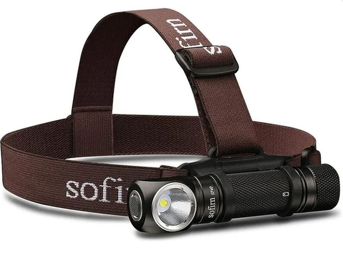 Налобный фонарь Sofirn SР40. Этот небольшой, но мощный фонарь, который можно использовать и в качестве налобного, при работе в темных местах с помощью специальной резиновой ленты. Он станет надежным помощником как в повседневных делах, так и в поездках. Его полюбили любители активного образа жизни и мастера благодаря отличным характеристикам и невысокой цене. Источник света - светодиод Cree XPL, обеспечивающий яркость от 5 до 450 люмен, а в турборежиме она достигает 1200 люмен. Четыре режима работы. Металлический корпус и высокая степень защиты устройства по стандарту IPX7. Световой луч распространяется на расстояние до 136 метров.