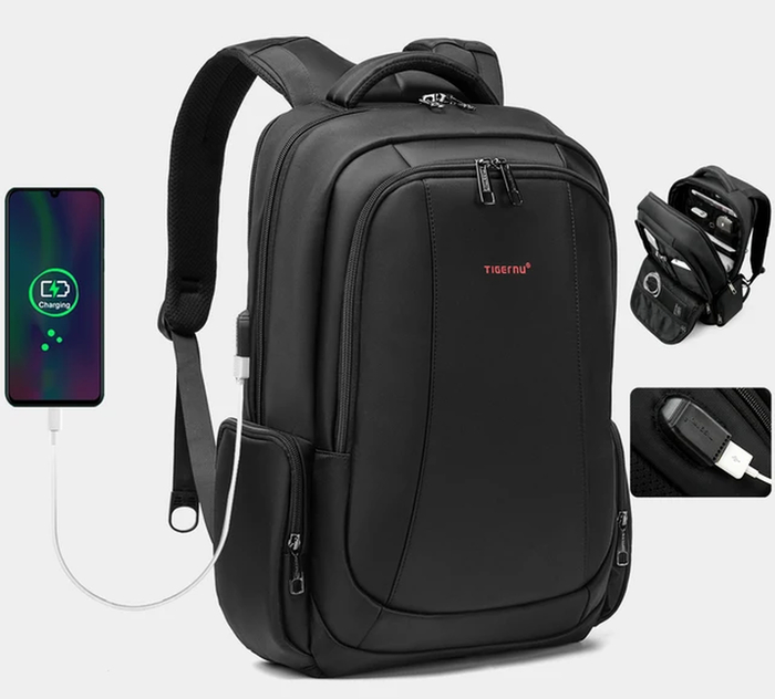 Повседневный городской рюкзак Tigernu. Популярные модели рюкзаков от известного бренда Tigernu. Они отлично подойдут, в зависимости от выбранного варианта, для переноски ноутбука с диагональю экрана от 14 до 17 дюймов. Продуманная конструкция и дизайн обеспечивают удобство и сохранность вещей. Качественное исполнение дополнено надежными кармашками и проитвокражевыми молниями. Есть варианты со встроенным USB-портом для легкой зарядки мобильных устройств. Регулируемые эргономичные лямки и вентилируемая спинка обеспечивают комфорт при ношении. Рюкзаки выполнены из надежного влагонепроницаемого нейлона, отличаются легкостью и вместительностью (20-35л).