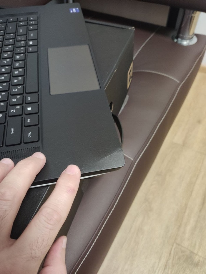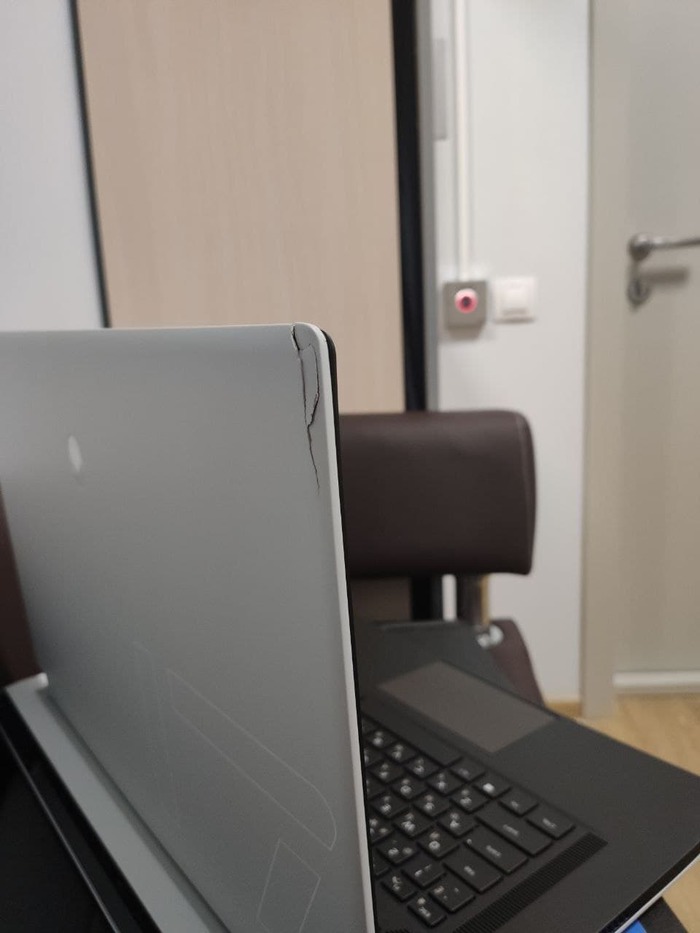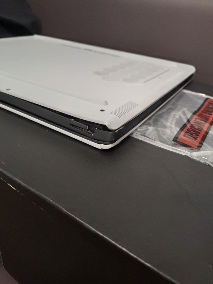 После распаковки оказалось что нотбук очень сильно поврежден - погнут угол, лопнула матрица.