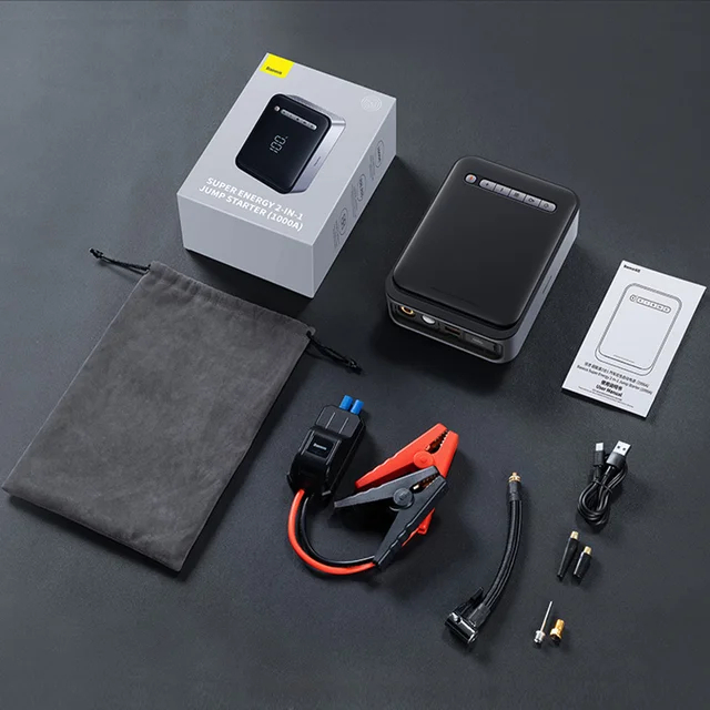 Устройство объединяет мощный стартер для автомобиля и полноценный воздушный компрессор. Стартер создаёт ток пуска до 1000A, что помогает запускать двигатель при полностью разряженном аккумуляторе. Конструкция безопасна: встроенные защиты предотвращают короткое замыкание, перегрев, обратную полярность и перегрузку. Стартер пригодится зимой, на трассе или в ситуациях, когда аккумулятор теряет ёмкость.