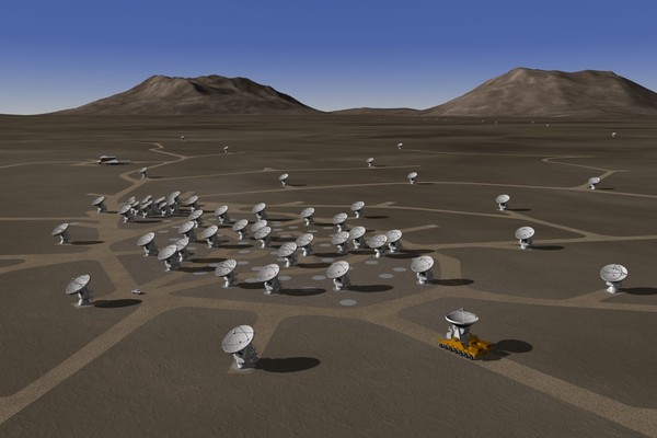 ALMA — массив из 66 радиотелескопов, расположенный в пустыне Атакама (Чили). Благодаря совместной обработке данных с нескольких телескопов одновременно, систему можно рассматривать как единый радиотелескоп с базой около 18,5 километров. Система обладает рекордной чувствительностью в субмиллиметровом и миллиметровом диапазоне.