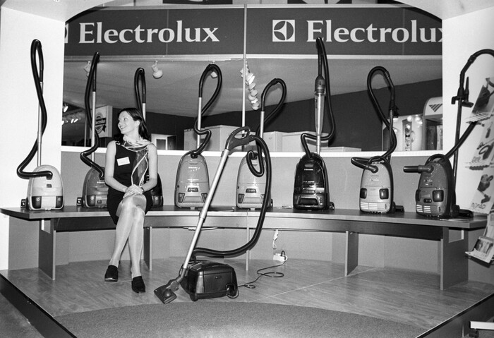 Международная выставка "СЕМ-98". 26-30 мая 1998. Новые модели пылесосов с пятиступенчатой системой регулировки мощности и сетевой индикацией шведской фирмы Electrolux. ЗАО "Экспоцентр".