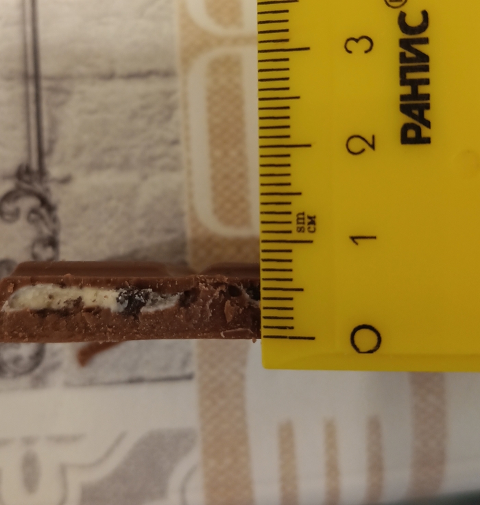 Восемь мм. И это не по бортику, у них нет бортика. Это толщина кирпичика в целом. Да, согласен, зато по размерам шоколадка "альпена" меньше, потому и толще, а "Алëнка" зато, хоть и тоньше, зато больше. Нет, не больше. Меньше. Заете почему? Это буржуйский "альпен":