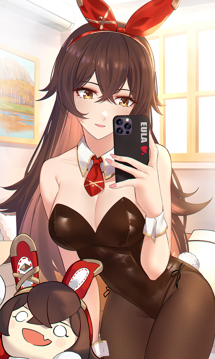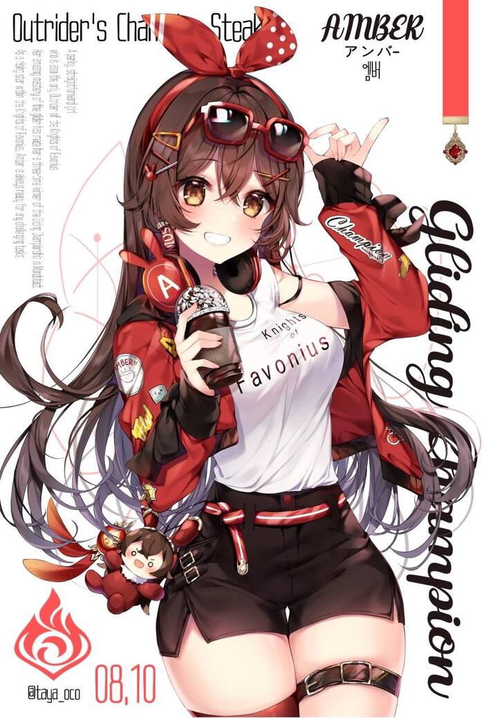 Эмбер. Главная по полетам в Мондштадте, лучший скаут Ордо Фавониус. Как видно, не любит, когда ее дергают за "ушки".