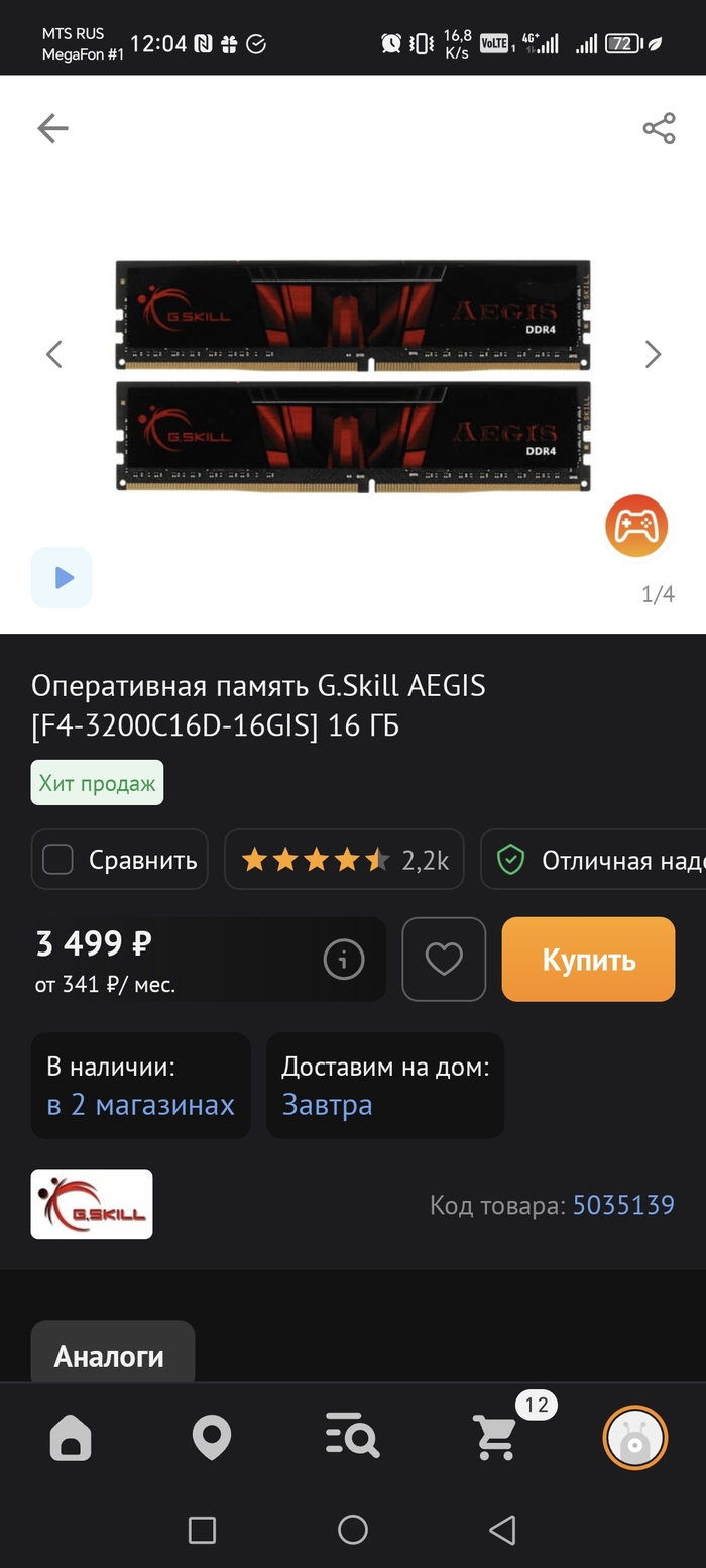 Тут так же всё ожидаемо одинаково. 2 плашки по 8Гб. Сравнив цены экономия моего выбора 200р по ценам нашего города. По цене автора экономия у меня около 500р.