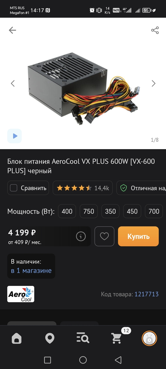 Блок питания у меня AeroCool VX PLUS 600W. С небольшим запасом по мощности. У автора номинал мощности если мне не изменяет память впритык по мощности видеокарты 550Вт. По цене 4900 у автора против моих 4200.