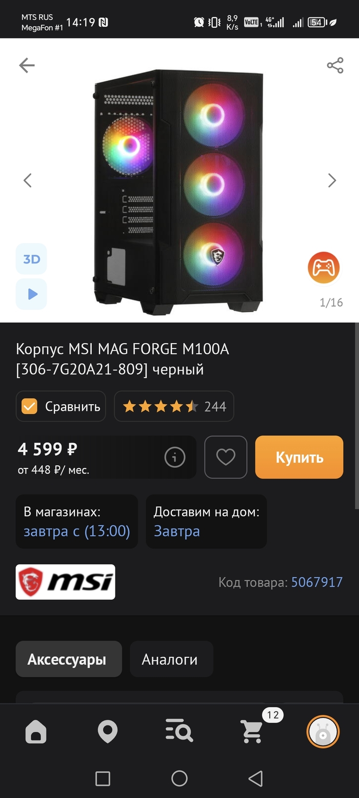И тут я опять не понимаю выбор автора. Фронтальная панель практически вся закрыта пластиком. Откуда в данном корпусе будет идти приток холодного воздуха и как будет реализована в самом корпусе циркуляция воздуха я затрудняюсь сказать. В своей сборке я остановил свой выбор на корпусе MSI MAG FORGE M100A. Из плюсов данного корпуса в сравнении с конкурентом: металлическая сетка с хорошей продуваемостью против закрытого пластиком фронта у конкурента, 4×120мм вентилятора в комплекте с корпусом против одного такого же у конкурента, что опять же позволяет нам съэкономить бюджет.