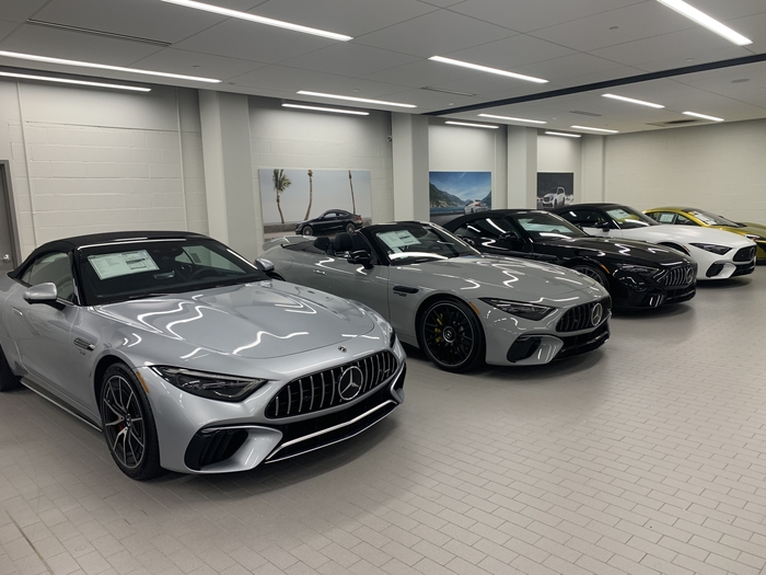 Сегодня заезжал по работе в салон Мерседес и у них уже стоят новые SL 55 и SL 63. При этом SL 63 уже проданы. Сделал несколько фото.