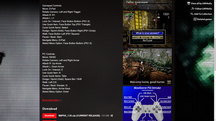 Сейчас демейки — это что-то вроде шутки. Ностальгический юмористический проект и не более того. Однако пару лет назад энтузиаст под ником b0tser выпустил демейк Bloodborne — Bloodborne PSX.