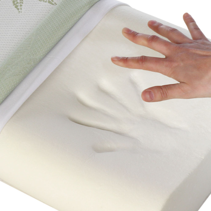 Сам материал можно описать, как очень упругий и пружинящий, словно желе. В отличие от memory foam он не поглощает тело внутрь себя, он поддерживает его. Латекс мягко удерживает шею и голову в заданных положениях, а мышцы на нём расслабляются. Он хорошо дышит и вы с ним не запреете. В общем свойства материала просто отличные, но не всё так хорошо, как могло бы быть.