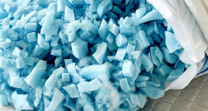 Для тех же, кто не хочет спать по струнке, всегда есть подушки всё из того же memory foam, просто прокрученного в блендере. Он уже не имеет никаких притязаний на анатомичность и идеально выверенную поддержку позвоночника, но его можно настраивать под свои хотелки. Увеличивать и уменьшать объем и конечно взбивать под себя в 3 часа ночи, как и тот же синтепон, но в отличие от него он не будет слёживаться за пол года.