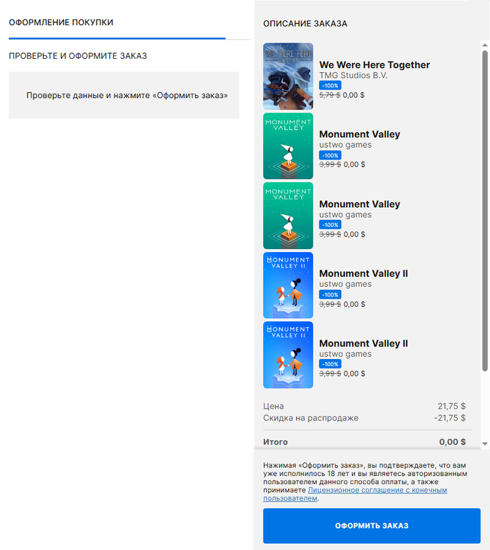 [Epic Games Store] We Were Here Together (ПК) и Monument Valley 1/2 (Android и IOS)