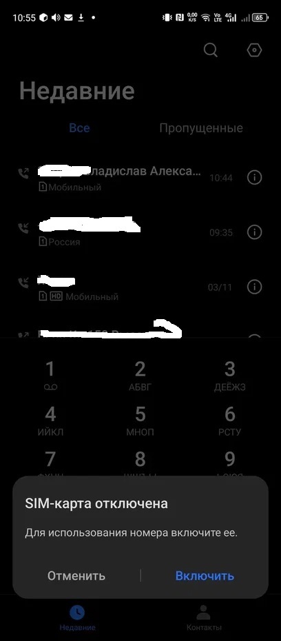 Есть контакт Владислав Александрович в записной книжке. Под ним стоит Sim 1 она включена. Вторая симка отключена. При попытке вызова - то что на скриншоте. Если включить вторую он позвонит с SIM 2. Проблема только с эти номером. Пробовал удалять и добавлять номер снова. Безуспешно. Могу только копировать номер, вставить и вызвать через трубку SIM1. Он определяет его как Владислав Александрович и звонит с первой. Тут же в истории вызова нажимаю повторно на эту запись и снова он требует включить SIM 2. Как починить ? Телефон Tecno POVA 5.