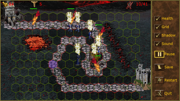 Биться с противником придется в двух форматах — ̶н̶а̶ ̶к̶о̶р̶о̶б̶к̶е̶ ̶в̶ ̶М̶а̶р̶ь̶и̶н̶е ̶д̶е̶с̶я̶т̶ь̶ ̶н̶а̶ ̶д̶е̶с̶я̶т̶ь̶ в чистом поле и у стен замка. Механика у сражений одинакова — водишь пальцем отряды по шестиугольным сотам. Меченосцам и булавщикам нужен тесный тет-а-тет, а вот лучники могут лупить издалека. Цель — перебить бестолковые полки неприятеля и посмотреть маленькую катсцену со своим триумфом (ну или с позорным побегом вражеского героя).