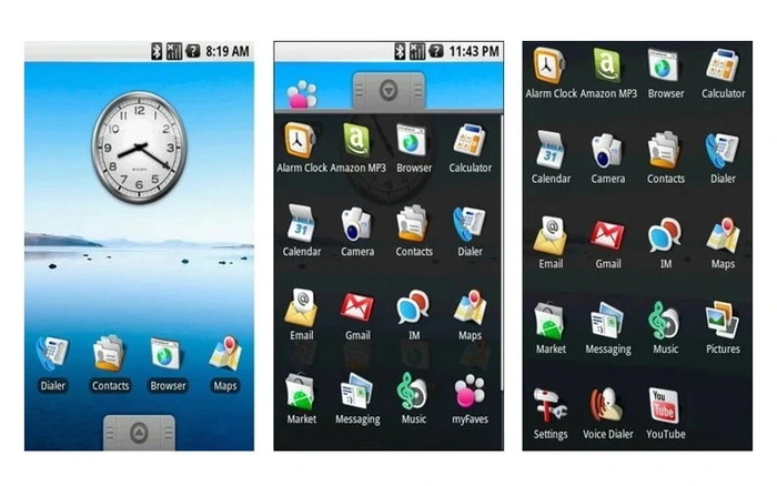 В сентябре 2008 года Google анонсировала первый смартфон на новой операционной системе — T-Mobile G1. Он предназначался для американского рынка и было разработано совместно с компанией HTC. Устройство с Android 1.0 предлагало пользователю магазин приложений Android Market, несколько домашних экранов, произвольное размещение папок и ярлыков на главном экране (которое у iOS появилось только недавно), уведомления, мультизадачность и поддержку графического API OpenGL ES 1.1.