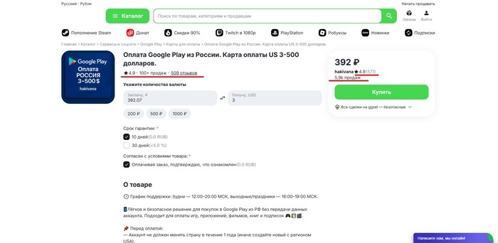 Большинство площадок, где можно купить подарочную карту Google Play в России, решают такие вопросы в течение суток, а в 90% случаев — восстанавливают доступ или выдают новый код.