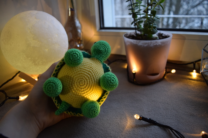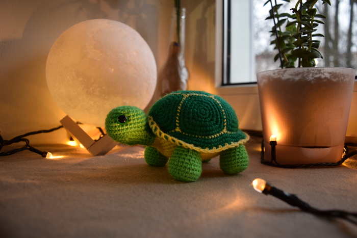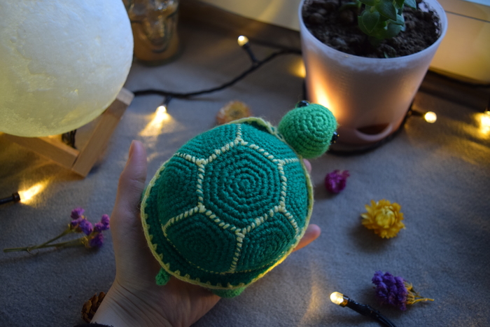 По моим ощущениям эта черепашка одна из самых сложных игрушек что я вязала. Возможно из-за того что я параллельно вязала, переводила описание и модифицировала его. Так же у меня не было письменного описания как сшиваются детали черепашки. Ну как было, но мой уровень английского не настолько хорош).