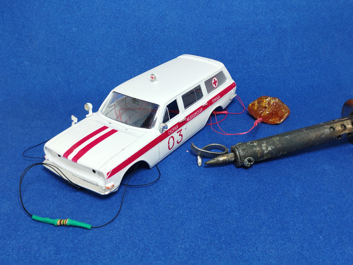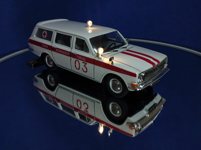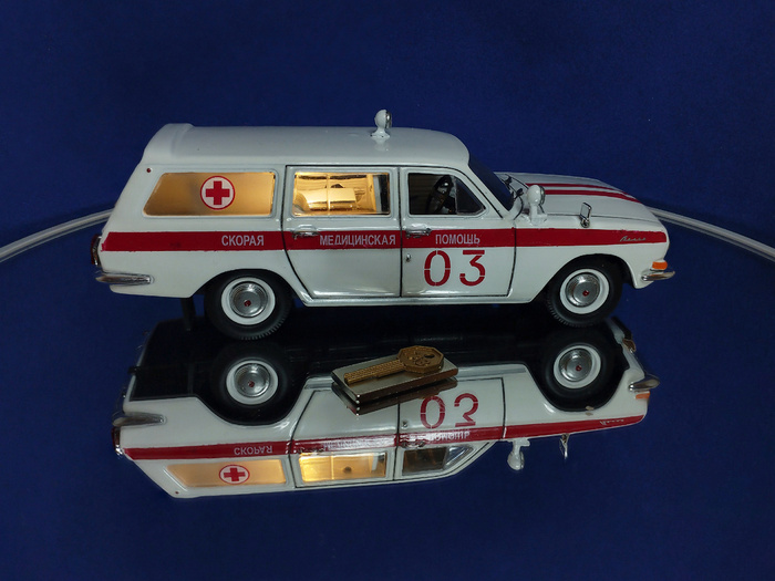 ГАЗ-24-03 «Волга» скорая медицинская помощь. Электрификация и улучшение модели от Deagostini (1:43)