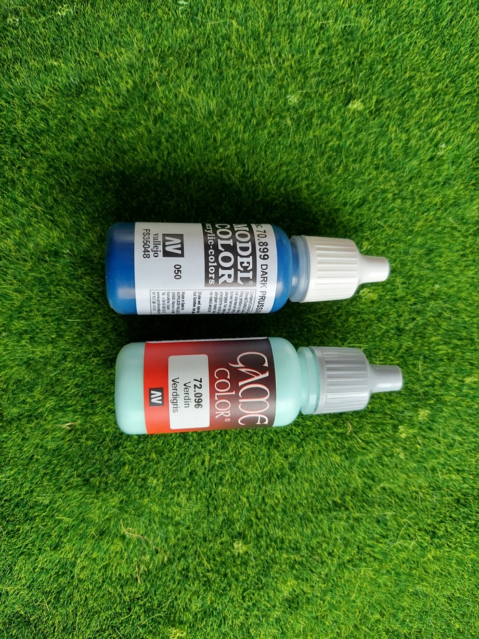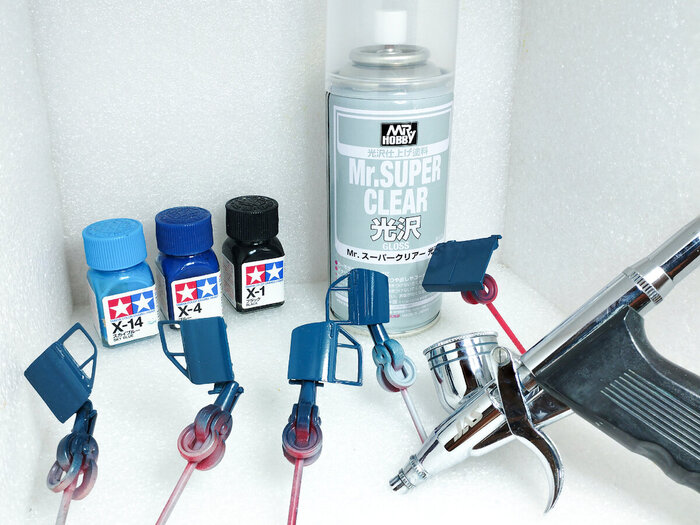 Для окрашивания деталей под цвет, оставшегося в живых капота, я смешал глянцевые эмалевые краски: Х-14 Sky blue, X-4 Blue и Х-1 Black (Tamiya) и окрасил с помощью аэрографа.