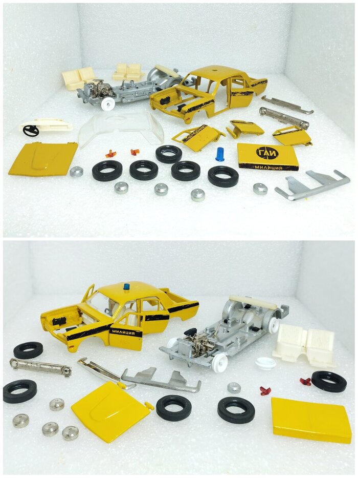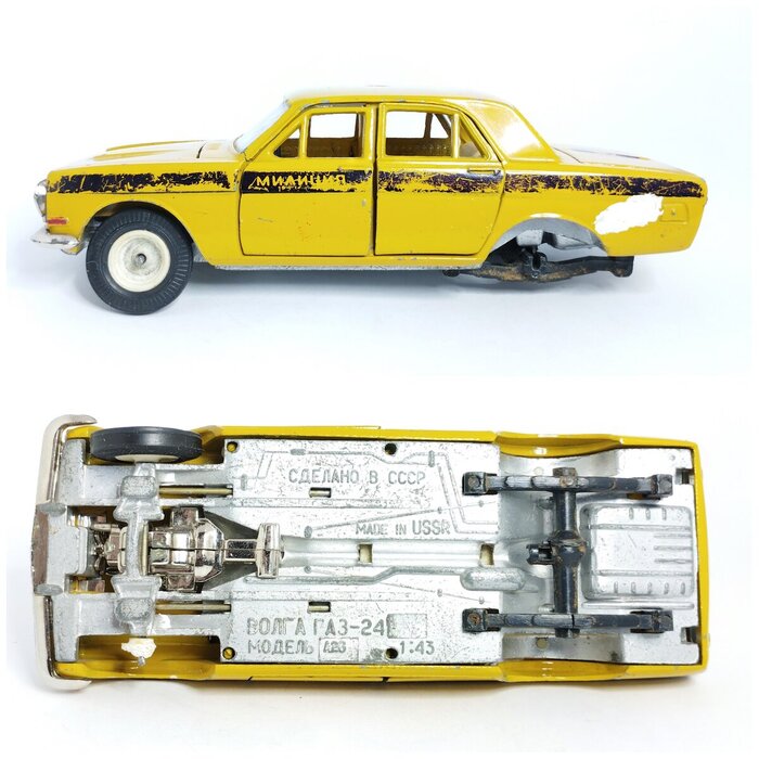 Всем привет! Ко мне на восстановление приехал вот такой уставший "попугайчик" с приветом от моделиста Е. Это саратовская модель ГАЗ-24 "Волга" ДПС в масштабе 1:43 явно из последнего периода выпуска моделей, который закончился на МОССАРе в 2012 году.