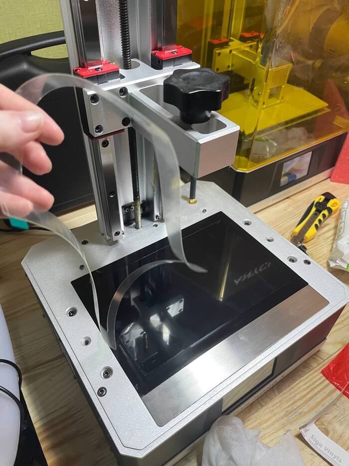 Задняя дверь, фрагмент рукоятки переключения КП и задние фонари были распечатаны на фотополимерном принтере Photon Mono 4K от фирмы Anycubic из полупрозрачной смолы Clear линейки Basic с помощью технологии LCD-печати.