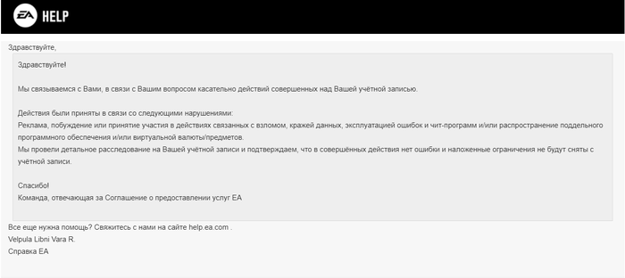 В АРЕХ так и не пошли играть, хоть терять вместе с этим аккаунтом от бесплатной игры было нечего и можно было просто завести новый акк, но такое отношение от ЕА погубило и так низкую репутацию в моих глазах.