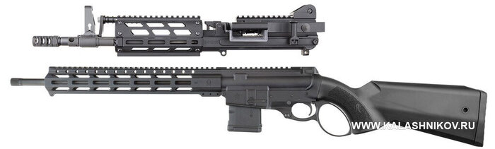Винтовка Herring Model 2024 Modern Lever Action (внизу) и затворная коробка MCR Dual-Feed с лентопротягом