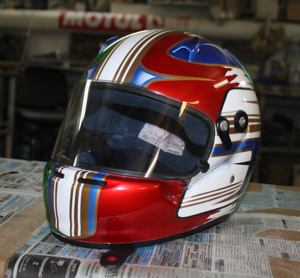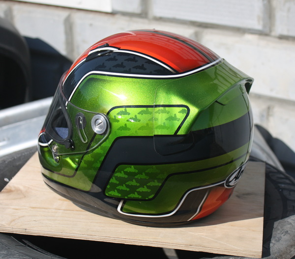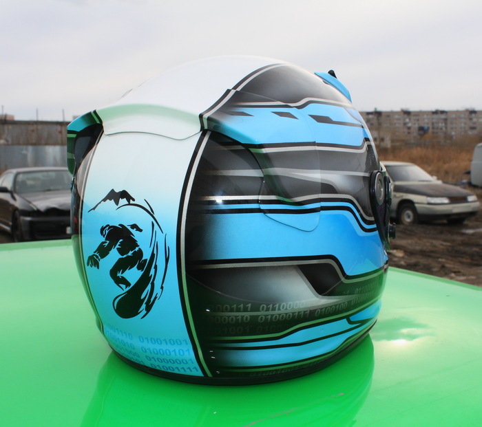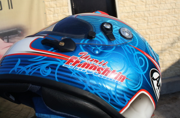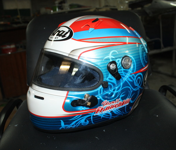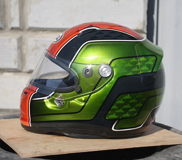 Выполнили аэрографию на шлеме для молодого Тюменского картингиста. Шлем ему вручили на тренировке аж в городе Сочи. Там можно и зимой в соревнованиях по картингу поучаствовать)))