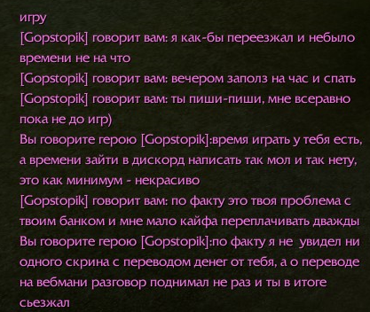 Идут дни, Саша и лена в дисскорде не появляются в сети. Решил наведаться в игру и посмотреть что там да как, захожу и о чудо - вижу всех в сети! Спрашиваю Сашу еще раз по деньгам, говорит что вот занят покупкой домика, как только все уладит сразу же переведет.