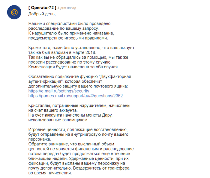 На следующий день ничего не было и на следующий день тоже, в общей группе дисскорда Саша пишет что его аккаунт взломали, а тым было куча игровой валюты, порядком 300к и еще много жетонов с кристаллами на продажу. И тут я думаю "нормально так, долг еще не отдал, а в игру влил судя по всему тыщь 20 рублей, не меньше. Но тем не менее Саша меня заверяет, что все будет в шоколаде, он человек честный и не хочет портить себе репутацию из-за такой мелочи и попросил просто подождать, а ему пока нужно будет свалить на несколько дней. Прошло несколько дней: